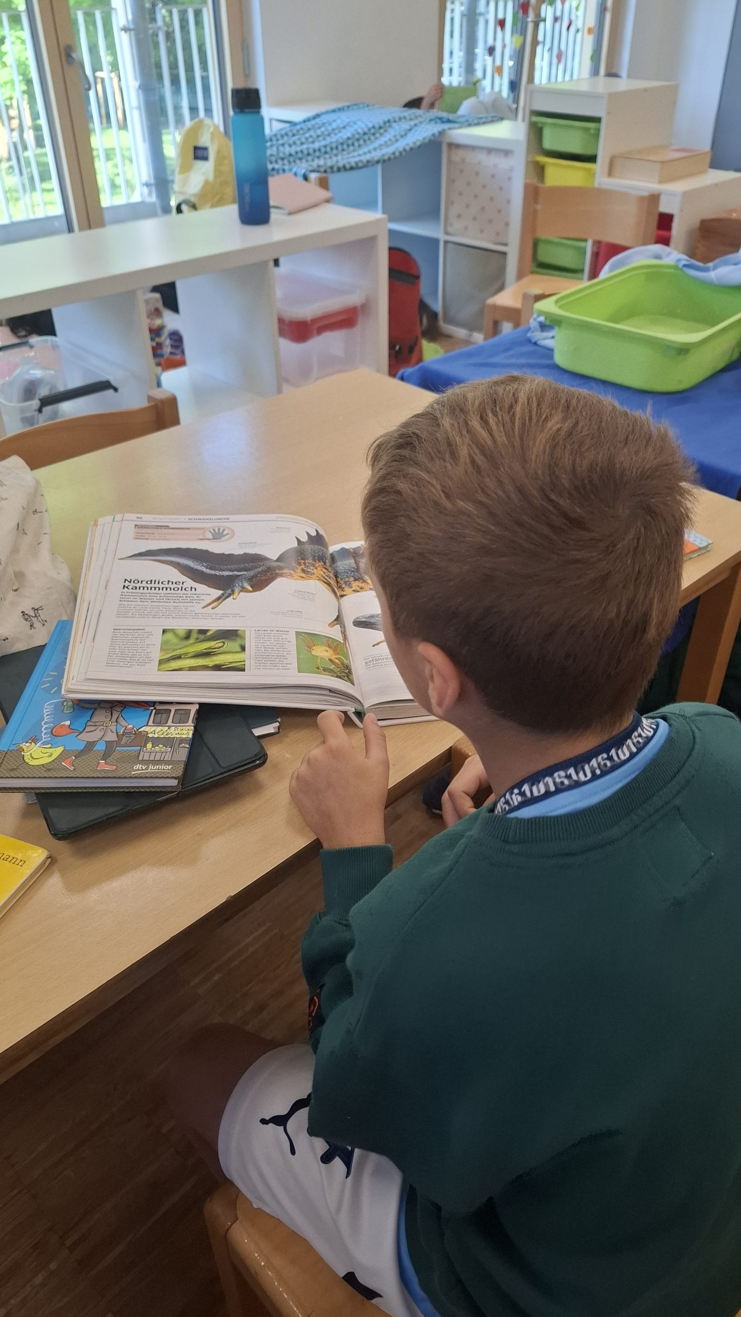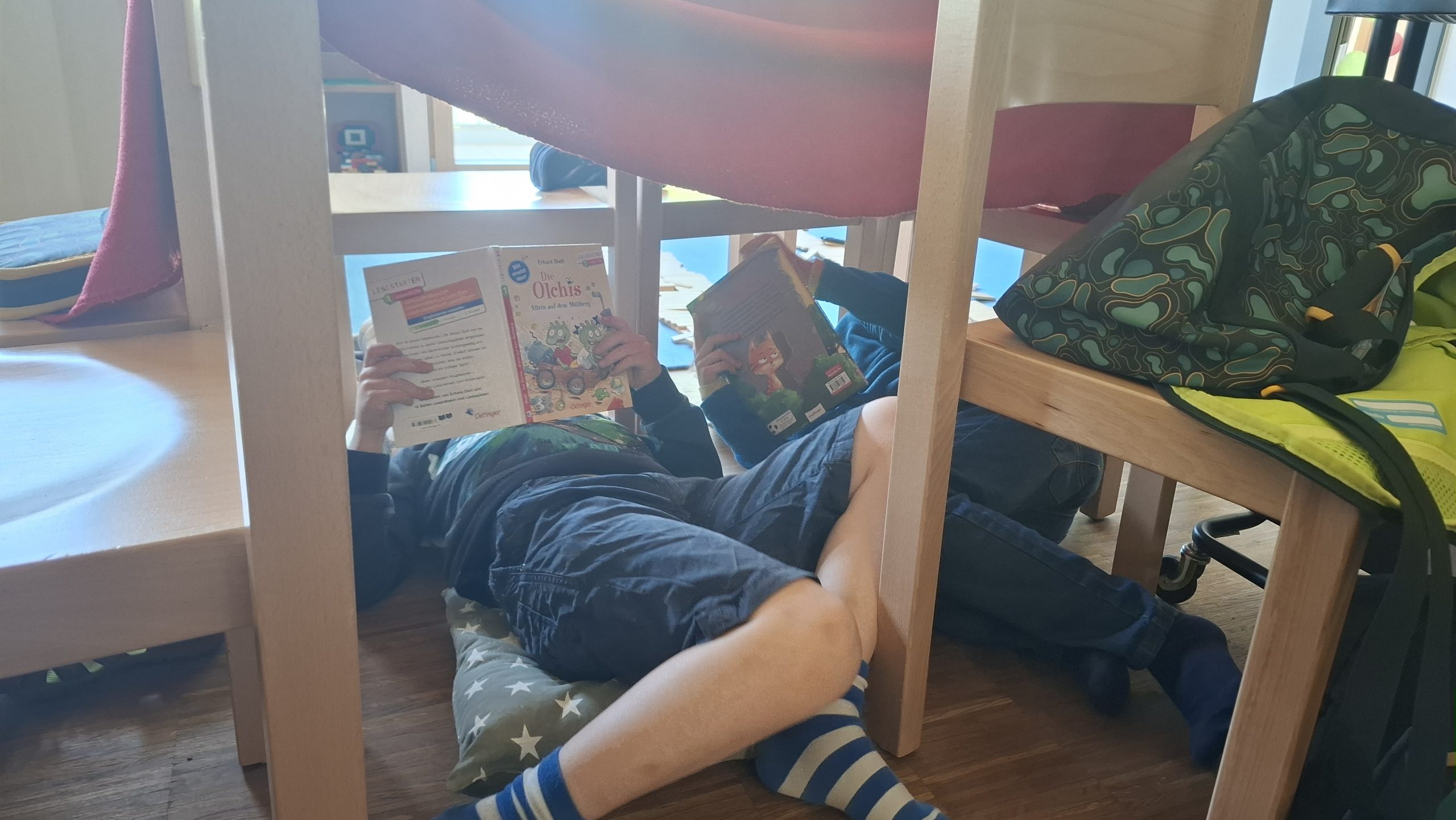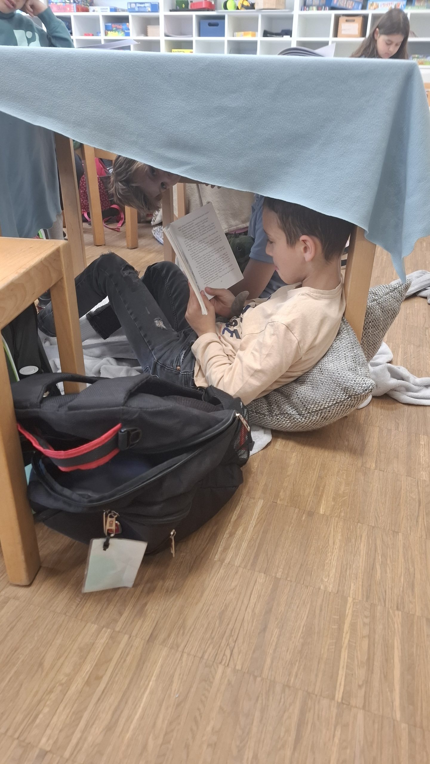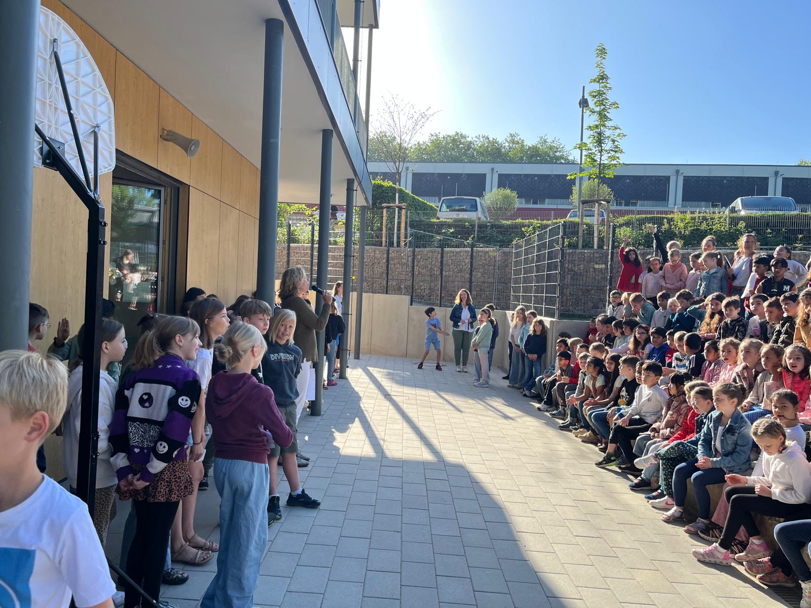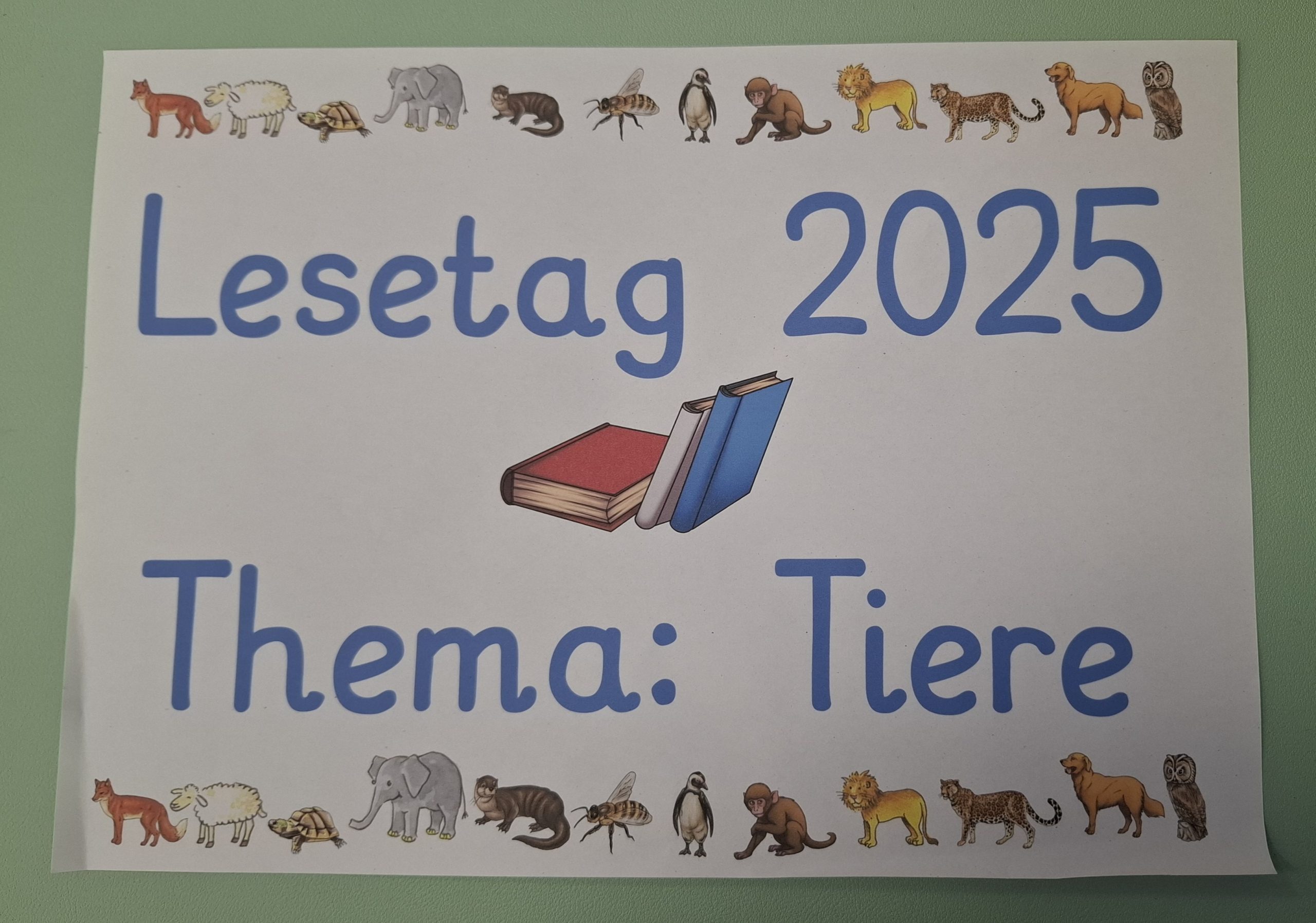 Am 16.05.25 fand dann unser traditioneller Lesetag statt. Besonders schön war, dass wir an diesem Tag mit der gesamten Schulgemeinshaft in einem Gebäude waren. Begonnen haben wir diesen besonderen Tag auf dem Schulhof mit unserem Leselied „Lesen heißt auf Wolken liegen“. Der Tag wurde für alle Jahrgänge in freie und feste Lesezeiten unterteilt. Dafür brachten die Kinder Bücher, Decken, Kissen und Kuscheltiere von zu Hause mit und machten es sich damit an einem ausgewählten Platz gemütlich. In den festen Lesezeiten hörten die SchülerInnen einem Buch zum Thema Tiere zu und bearbeiteten anschließend ein kleines Angebot. Für den Jahrgang 3 gab es zusätzlich noch einen Vorlesewettbewerb, in dem 6 ausgewählte Kinder jeweils 5 Minuten Vorlesezeit hatten und eine Jury gespannt zuhörte. Die Gewinnerin des letzten Jahres hatte die ehrenvolle Aufgabe dieses Jahr mit in der Jury zu sitzen.
