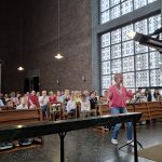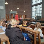 Die Einschulungen fanden pro Klasse statt. Begonnen wurde jeweils mit einer kurzen Andacht durch Frau Stodt-Serve in der Kirche Sankt Andreas. Frau Stodt-Serve erzählte den neuen Erstis aus dem Buch „Mutmurmeln“ und die Kinder hörten sehr gespannt zu. Zudem begrüßte das Kollegium die Kinder mit dem Lied „Herzlich willkommen, ihr lieben Leute“. Auch die Paten der 3. Klassen schlichen sich jeweils mucksmäuschen still in die Kirche und begrüßten ihre neuen Patenkinder mit einem Lied, bevor es dann zur ersten Schulstunde in die jeweiligen Klassenräume ging. Währenddessen konnten die Familien sich die Wartezeit in der Mensa bei Kaffee und Kuchen vertreiben.